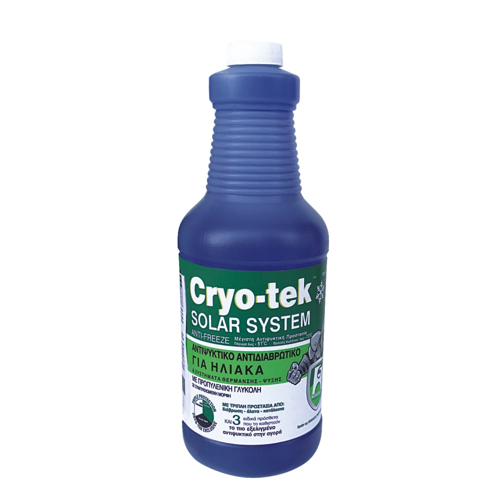 To CryoTek Solar 1L Αντιψυκτικό για ηλιακά συστήματα είναι το μοναδικό αντιψυκτικό της αγοράς με 100% παρθένα μη ανακυκλωμένη προπυλενική γλυκόλη που δεν προκαλεί διάβρωση με την πάροδο του χρόνου. Περιέχει επίσης ειδικούς πρόσθετους παράγοντες για τριπλή προστασία – από διάβρωση, άλατα και κατάλοιπα των ηλιακών συστημάτων.