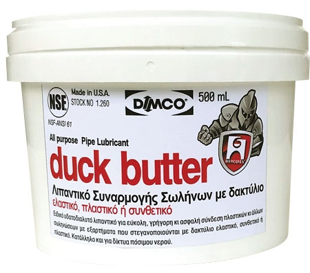 Duck Butter Λιπαντικό Συναρμογής Σωλήνων με δακτύλιο. Ειδικό υδατοδιαλυτό λιπαντικό για εύκολη, γρήγορη και ασφαλή σύνδεση πλαστικών κι άλλων σωληνώσεων με εξαρτήματα που στεγανοποιούνται με δακτύλιο ελαστικό, πλαστικό ή συνθετικό.