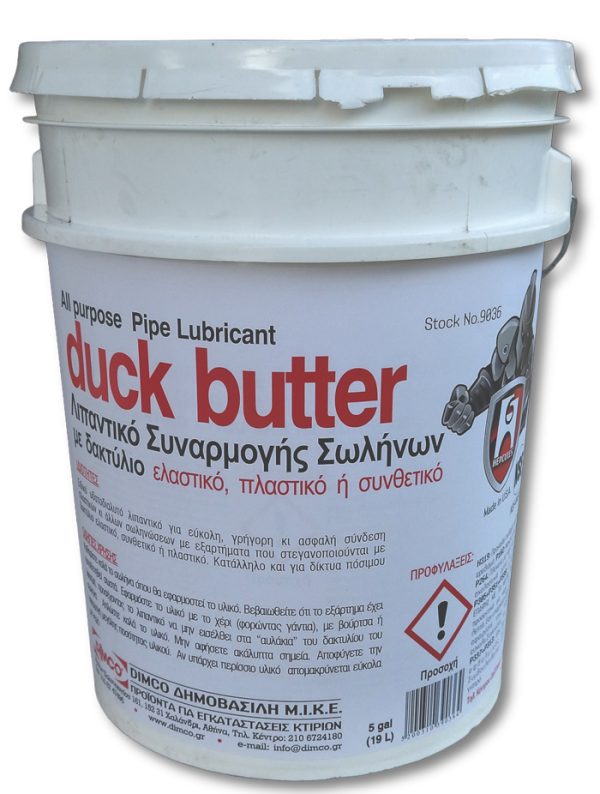 Duck Butter Λιπαντικό Συναρμογής Σωλήνων με δακτύλιο σε 2 μεγέθη : 250mL (σωληνάριο) κωδ.1162, 1L (δοχείο) κωδ.1163 και 19L (δοχείο) κωδ.9036