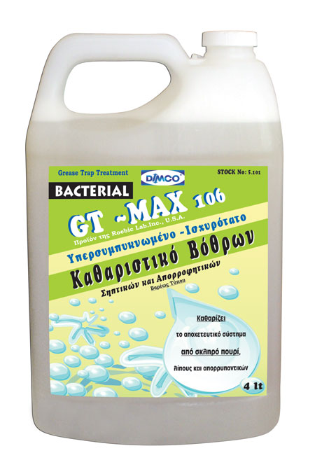 Το GT Max 106 Bacterial 12L Καθαριστικό Βόθρων με βακτήρια είναι ένα βιολογικό προϊόν , βαρέως τύπου. Περιέχει εκατομμύρια βακτήρια ανά mL και χωνεύει άμεσα και δραστικά λίπη, λάδια, πρωτεΐνες και αμυλούχες ουσίες.