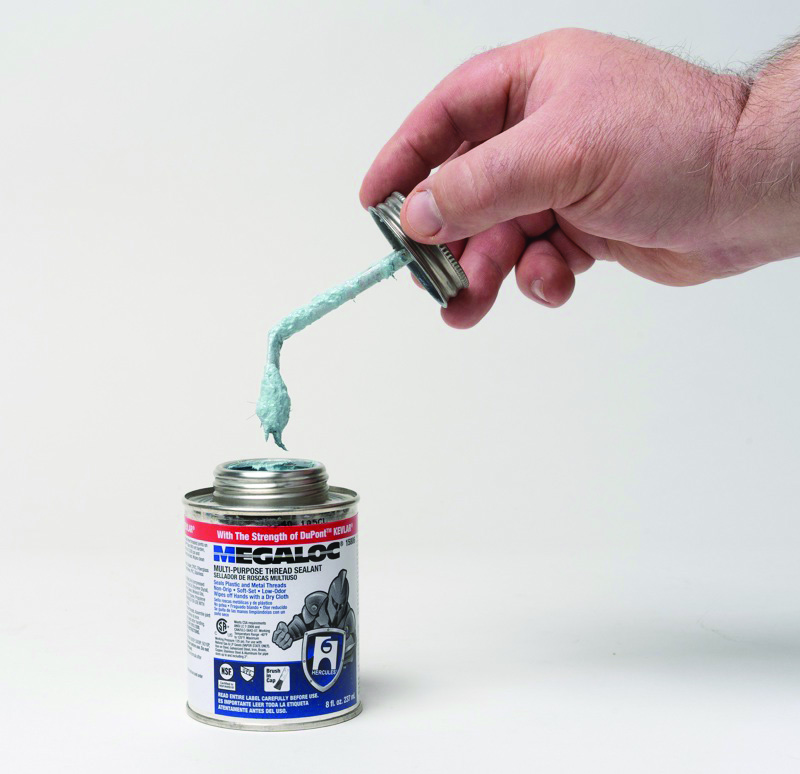 MEGALOC Στεγανοποιητικό Σπειρωμάτων 237mL για μεταλλικά και πλαστικά σπεριώματα. Ειδικό μείγμα βάσεως λαδιού, για στεγανοποίηση ενώσεων με σπείρωμα ή φλάντζα σε μεταλλικούς και πλαστικούς σωλήνες. Για δίκτυα που μεταφέρουν: πόσιμο ζεστό ή κρύο νερό, ατμό, φυσικό αέριο, υγραέριο, αραιωμένα οξέα, αμμωνία, φρέον, αέρα, πετρελαιοειδή, διαλυτικά, λάδια, βενζίνη, καύσιμα και πολλά άλλα χημικά υγρά και αέρια.