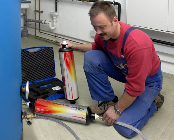 Το “φυσίγγιο” απιονισμού απλώς τοποθετείται ανάμεσα στο σωλήνα παροχής νερού και του λέβητα μόνο για την πρώτη φορά γεμίσματος του δικτύου θέρμανσης, διασφαλίζοντας ότι το νερό συμμορφούται με τις προτεινόμενες συστάσεις του κατασκευαστή του λέβητα.